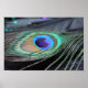 Uma fotografia festiva do olho roxo e turquesa de uma pena de pavão. Esta elegante imagem de pena é excelente para casamentos, Mardi Gras, e todos os dias decoração! Personalize esta poster de fotografia de uma pena de pavão com o seu próprio texto e imagens usando o botão "Personalizar o Ti" para fazer presentes especiais e exclusivos de penas de pavão!