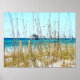 Uma bela fotografia de uma cena de praia com grama-do-mar no primeiro plano e um píer no fundo. Esta fotografia é feita usando o estilo "tinta" na sala escura digital. Perfeito para qualquer parede.