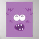 Monstro Roxo Bonito e Divertido Kawaii Face Poster Impressão. Excelente para crianças e adultos.