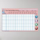 Este poster de parede vai na parede de cada sala de aula. Os nomes dos alunos são adicionados na coluna esquerda pelo professor. Todas as semanas, no trimestre em que o aluno frequenta o professor, coloca uma estrela ou uma marca de seleção na parede mostrando que o estudante frequentou aquela semana. Este é um gráfico em sala de aula cristã, e também tem um ponto a cada semana onde o professor pode marcar que o aluno aprendeu o verso da memória semanal. 13 semanas num trimestre significa 13 versos de escritura memorizados. Recomendamos que se dê prêmios trimestrais para a presença e os versos da memória. Os alunos são motivados por prêmios simples e certificados de realização.