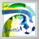 Poster mostrado com um impressão de bola de futebol e um exemplo de texto de Seattle nele. 24" x 24" Tamanho. Personalize este item ou comprar conforme projetado. Imagem do stock www.freepik.com