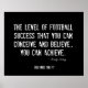 Este poster de futebol em preto e branco apresenta uma citação motivacional de futebol por parte do designer e autor Felicity Luckey. Este impressão desportivo faz parte de uma coleção de 20 posters inspiradores com citações para jogadores de futebol, treinadores e motivação em equipe. Esta citação também está presente nas nossas cores da série de poster de futebol denim e na nossa série de poster de futebol denim azul. A citação de futebol sobre este poster motivacional lê: "O nível de sucesso do futebol que você pode conceber e acreditar, você pode alcançar." ~ Felicity Luckey