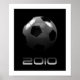 Poster exclusivo mostrando uma ilustração de alta qualidade de uma bola de futebol e do ano de 2010. Ilustração 3D altamente detalhada, ideal para impressão em formato grande, com borda branca decorativa.