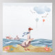 Barcos de papel d'água flutuando no oceano. Uma bela composição do litoral e o ganso branco e fofo infelizmente observando seus balões flutuando. Um começo ideal para uma história de ninar. Um presente tão adorável, especialmente se os três trabalhos de arte forem comprados para o bebê recém-nascido.