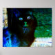 Gato em negativo... assustador com olhos brilhantes e cores azuis e verdes brilhantes