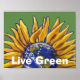 O poster de Arte da Terra de Girassol mostra nossa pintura original de um girassol com o planeta Terra no centro pintado digitalmente por Traci Van Wagoner, com as palavras personalizáveis, Live Green. Nossa obra de arte original é uma bela maneira de ajudar a criar a consciência de que nosso planeta é uma mercadoria precioso. Viva verde, fique verde, e pegue esta poster para todos que amam nossa mãe terra, flores, girassóis e conservação. Plante uma flor, abraça uma árvore, compre com nosso saco original de compras na Terra, e reciclar, reuso e conservação. Pare de usar essas bolsas plásticas e compre com estilo