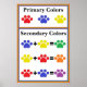 Este gráfico de cores principal e secundário de impressão de pata é excelente para exibição em qualquer sala de aula de arte ou temática animal.