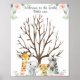 Pink Floral Safari Fingerprint Guestbook Poster do safari Animais safari de menina doce — símbolo de livro digital com alguns adoráveis arranjos florais com rosas rosa e folhagem de eucalipto, quatro animais safari e uma árvore nua.
