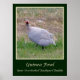 Esta Poster apresenta uma guinada sobre um fundo verde escuro. As aves da Guiné pertencem à família Numida - estão relacionadas com faisões, perus e outras aves de caça. Os galos-guineenses são considerados um dos melhores exterminadores de insetos nocivos, fazer-os como um complemento de um jardim dos quintais.