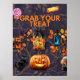 Mude seu espaço para um paraíso de Halloween. Pegue esta poster de Halloween incrível. O texto diz, "Agarre seu Tratado", e é preenchido com itens assustadores do Dia das Bruxas. Tamanho: 12"x16" Este é um impressão digital impresso em papel poster de alta qualidade, que faz as cores serem pop e dá a ele uma aparência natural! Prepare-se para o Halloween hoje.