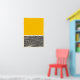 Abstrato arte com ilusão óptica com bloco amarelo arrojado, linhas onduladas pretas e borda bege.