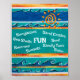 Poster brilhante e divertido que representa o verão e a praia! As cores tropicais iluminarão qualquer lugar. Arte de aquarela criada por Chris Ambrose.