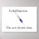Decorra seu cubículo, desktop ou outro espaço vazio com este poster de canvas premium de 7 pol por 5 pol. por Sirenes Blascinantes. Tem a palavra "Injeção letal" no topo, com uma seringa diretamente por baixo. Por baixo da seringa estão as palavras "A nova cadeira elétrica".