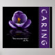 Essa poster inspiracional mostra uma citação sobre carinho e coragem com uma flor roxa que parece estar flutuando na água com uma reflexão brilhante. A citação atual diz: "De carinho vem coragem. - Lao Tzu