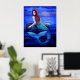 Numa rocha logo após o pôr do sol num oceano escuro, uma sereia olha para trás antes de começar o jantar de lagosta. Poster reproduzida a partir do acrílico original na pintura de fantasia canvas de Sue Halstenberg.