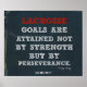 Um poster de lacrosse motivacional, sobre o denim azul rasgado, com letras vermelhas e brancas. (Este inspiracional impressão de lacrosse faz parte de uma série de 10 posters com citações de lacrosse neste design de denim.) A citação de lacrosse neste poster desportivo diz: "Os objetivos de Lacrosse são alcançados não pela força, mas pela perseverança." ~ Felicity Luckey.