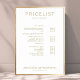 Poster moderno de lista de preços. Edite seu produto em alguns minutos adicionando seus dados. Você pode alterar a fonte/cor/posição por "mais personalização".