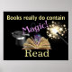 Um poster captivador sobre a magia dos livros! Perfeito para exibição em bibliotecas escolares, salas de aula ou portas escolares! Estudantes cercados com mensagens positivas sobre leitura e magia dos livros!