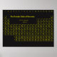 Este poster apresenta uma mesa periódica amarela sobre um fundo preto. Um excelente adicional a um laboratório ou qualquer quarto na casa.