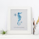 Um poster de inspiração costeira para quartos, escritórios domésticos e áreas vivas na sua casa de praia. Esta impressão apresenta minha mão original pintada de água, cavalo-d-água e peixe-estrela em tons azuis com minha citação "Não tenha medo de mergulhar fundo", definida na tipografia moderna de sans serif. Personalize para ler o que quiser. Para mais ofertas motivacionais e impressões para cavalos marinhos à venda, visite www.zazzle.com/dotellabelle