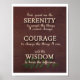 Rezar pela serenidade "Deus, me conceda serenidade para aceitar as coisas que não posso mudar, coragem para mudar as coisas que posso, e sabedoria para saber a diferença." Estas famosas palavras de Reinhold Niehbur pop contra um fundo de madeira castanho avermelhado. Poster motivacional acentuando Serenidade, Coragem e Sabedoria. Estas palavras inspiradoras na impressão são excelentes de se exibir como parte de conselhos visuais para o escritório e para casa. O poster é criado no layout do retrato, mas pode ser personalizado para ajustados de outros tamanhos.