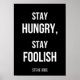 Eleve qualquer espaço com nosso poster motivacional "Fique Fome, Fique Foolado", com a citação icônica de Steve Jobs. Contra um fundo negro impressionante, o texto branco nítido fornece uma mensagem poderosa perfeita para inspirar ambição e criatividade. Essa poster faz um dom ideal de graduação, encorajando novos começos e perseguições ousadas. Seja para um dormitório ou escritório, é um lembrete eterno para abraçar a curiosidade e a inovação. Descubra a combinação perfeita de inspiração e estilo hoje!