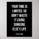 Elevem o vosso espaço com este poster motivacional impressionante, que inclui uma poderosa citação de Steve Jobs: "O vosso tempo é limitado, por isso não o desperdice a vida de outra pessoa." Colocado contra um fundo preto elegante com texto branco em negrito, este poster é um eterno de inspiração. Perfeito como presente de formatura, serve como um lembrete constante para viver autenticamente e perseguir suas paixões. Ideal para decoração de escritórios ou um presente pensativo, esta poster é uma fonte diária de motivação e capacitação.