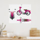 Uma moto cor-de-rosa mostrando de todos os ângulos. Esta design parece realmente eficaz nestes Poster