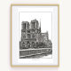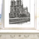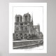A catedral icônica de Notre Dame de Paris, desenhada do outro lado do rio Sena, em toda sua glória, para lembrar suas mais românticas viagens de Paris. Arte de parede perfeita para uma decoração retrógrada em Paris.