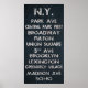 Este sinal de rua preto e branco de Nova Iorque lista os locais que todos os viajantes devem visitar numa viagem para a Grande Maçã. Esta impressão tem todos os destinos que nunca deveriam ser perdidos em Nova Iorque.