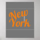 Design de texto de Nova Iorque, poster de laranja e cinzas para decoração de arte em muros em casa ou no escritório.