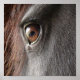 Cavalo negro freísico perto do olho em um impressão de poster.