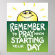 Poster cristão com um lembrete para rezar quando começar seu dia. Design tem um sol amarelo e um texto branco. Excelente para qualquer decoração de quarto e aulas de domingo