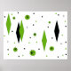 Este Poster de Ouros Vertros e Starbursts personalizáveis é uma nova abordagem ao estilo de vintage. Apresenta estereótipos de cozinha e pretos em bolinhas verdes, em volta de formas geométricas, verdes e de diamante preto. Personalize a cor de fundo neste produto moderno de meio século se você estiver se sentindo ousado ou o deixe branco se subjugado for mais o seu estilo. Vocês certamente gostarão da nossa homenagem aos anos 50. Comprar isso hoje e seja o gato mais legal do seu quarteirão.