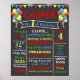 Este Poster de Aniversário do Chalkboard tem balões coloridos em cores de primeira qualidade e pode ser personalizado para qualquer idade de aniversário. O fundo é feito para parecer um quadro. Esta placa pode ser usada como um protetor de fotos para o aniversário do seu filho, decoração de festas e/ou uma sessão fotográfica de esmagamento de bolo.