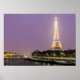 Poster mostrada com uma impressão fotográfica da famosa Torre Eiffel em Paris à noite. Personalize este item ou comprar como está. Imagem do stock