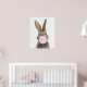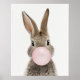 Coelho soprando uma pastilha elástica rosa. Arte de viveiro para decorar o quarto do seu filho.