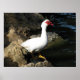 Pato de Barbary branco com rosto vermelho e bico perto de um lago.