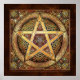 Faz muito tempo que eu era um pagão (eu simplesmente não faço deuses mais), então não salte para muitas conclusões aqui; eu simplesmente queria fazer algo interessante com uma forma ousada incrustada com o trabalho de nós, e eu pensei que isso seria uma imagem realmente impressionante. Finalmente fiz algo parecido com uma cruz Celta, só para turvar ainda mais as águas teológicas, ou para dar o mesmo tempo, ou algo assim - porque também é um símbolo marcante na sua versão Celta. Eu fiz dois tratamentos do pentáculo, um ouro, e o outro prata; cada um é essencialmente o mesmo exceto pela paleta. Há 18 dragões "assados" - dez no círculo, oito nos cantos - com vários painéis de bandas entrelaçadas - e, claro, o próprio pentáculo está aqui transformado em um design de puxão.