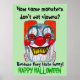Aqui está um palhaço assustador que vem junto com uma piada Dia de as Bruxas engraçado. O artista Jo-Ann Hayden.