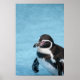 Pinguim magelânico, Sfeniscus magellanicus ou pinguim sul-americano sobre fundo de água azul