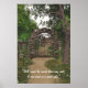 Esta poster apresenta uma obra de arte original de uma bela porta de jardim ornamentado, à frente e a citação "Ainda ao redor da esquina pode esperar, uma nova estrada ou um portão secreto