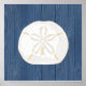 Um dólar de salada em creme e branco é colocado contra um fundo de velhos conselhos de madeira pintados em azul de cobalto para fazer um impressão ou poster de praia excelente para o seu espaço de sensação à beira-mar. Itens correspondentes e muitas outras designs de praia estão disponíveis na minha loja Zazzle.