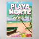 Playa Norte, poster de viagens mexicano com praia mexicana e barco de pesca.