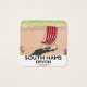South Hams, Devon, poster de viagens de praia na Inglaterra. Um poster devon de cartão postal de uma cadeira de baralho listrada em uma praia devon arenosa.