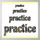 A palavra prática foi escrita quatro vezes. As letras são compostas por outras palavras. Um lembrete para perseverar ao tentar dominar qualquer tarefa ou habilidade