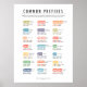 Este poster colorido apresenta alguns dos prefixos mais comuns no idioma inglês. Cada prefixo é mostrado com uma definição e várias palavras de exemplo.