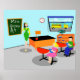 Este Poster de professor retrô personalizável ganha um A+! Este estilo de 1960, arte minimalista, desenho animado apresenta uma sala de aula vibrante e elementar com tudo o que é necessário para moldar as mentes do futuro. É o tipo de sala onde as ideias são valorizadas e a criatividade é elogiada. Na frente da sala de aula moderna de meio século, vemos o professor mais popular da escola em frente a um quadro. O professor está vestindo um vestido verde-brilhante e amarelo, com calçados amarelos. Embora o relógio na parede azul nos diga que está quase na hora do toque da campainha final, ela ainda parece tão fresca quanto uma margarida. Seu cabelo preto é mantido no lugar com uma faixa amarela e seu humor, os óculos vermelhos a ajudam a ver para conter qualquer dano na fila de trás. Ela está descansando uma mão sobre sua mesa laranja e preta. A mesa limpa é um tributo às suas belas habilidades organizacionais. A única coisa na mesa é uma maçã vermelha brilhante, que sem dúvida lhe foi dada por um estudante adorador. Falando em estudantes... Também podemos ver uma casal dessas. Do nosso ponto de vista, podemos ver dois ávidos estudantes sentados atrás das suas carteiras vermelhas, escolares. Há uma menina loira com rabo-de-cavalo salgado vestindo um vestido rosa brilhante. Ao lado dela, há um rapaz de cabelo escuro vestindo uma camisa verde e jeans azuis. Cada criança está segurando um livro azul brilhante da escola. Eles estão tão ansiosos para aprender que eles nem perceberam que é quase hora deles conselho o ônibus escolar amarelo que nós vemos esperando por eles através das persianas abertas na janela da sala de aula. Sob a janela, há uma estante de livros laranja segurando livros coloridos e um globo do mundo. Não se preocupem, crianças. Amanhã, voltará aos seus lugares com rostos brilhantes e brilhantes. O nome no quadro é personalizável.