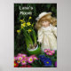 Poster de boneca e flores coloridas atrativas com um sinal dizendo "Sala de Luna."