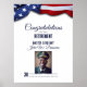 A design da placa é patriótica e adaptável, perfeita para celebrar uma aposentadoria militar. Ele tem um nome e uma classificação personalizáveis, ao lado do número de anos servidos, colocados contra um pano de fundo de uma bandeira americana com uma foto do aposentado de uniforme.